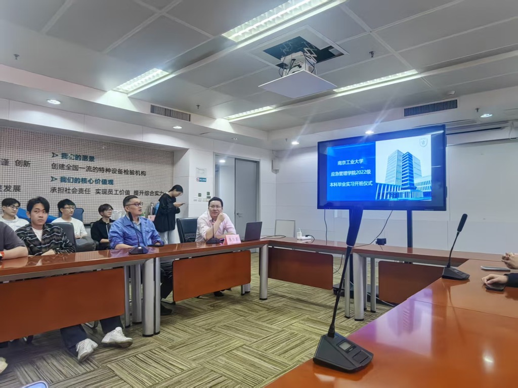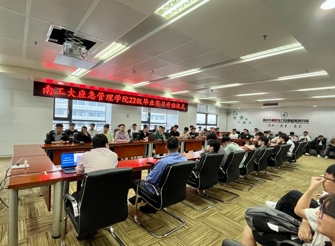 实习首日,全体师生前往南京锅检院江北院区,开启实习第一课。上午的实习开班仪式由张伯君主任主持,明确了本次实习的目标与纪律。随后,张主任带来“南京锅检院安全保障数智化转型”专题报告,系统介绍了特种设备检验领域的数字化升级路径,从智能监测平台到大数据风险预警,展现了数智化技术如何破解传统检验效率低、风险预判难等问题。