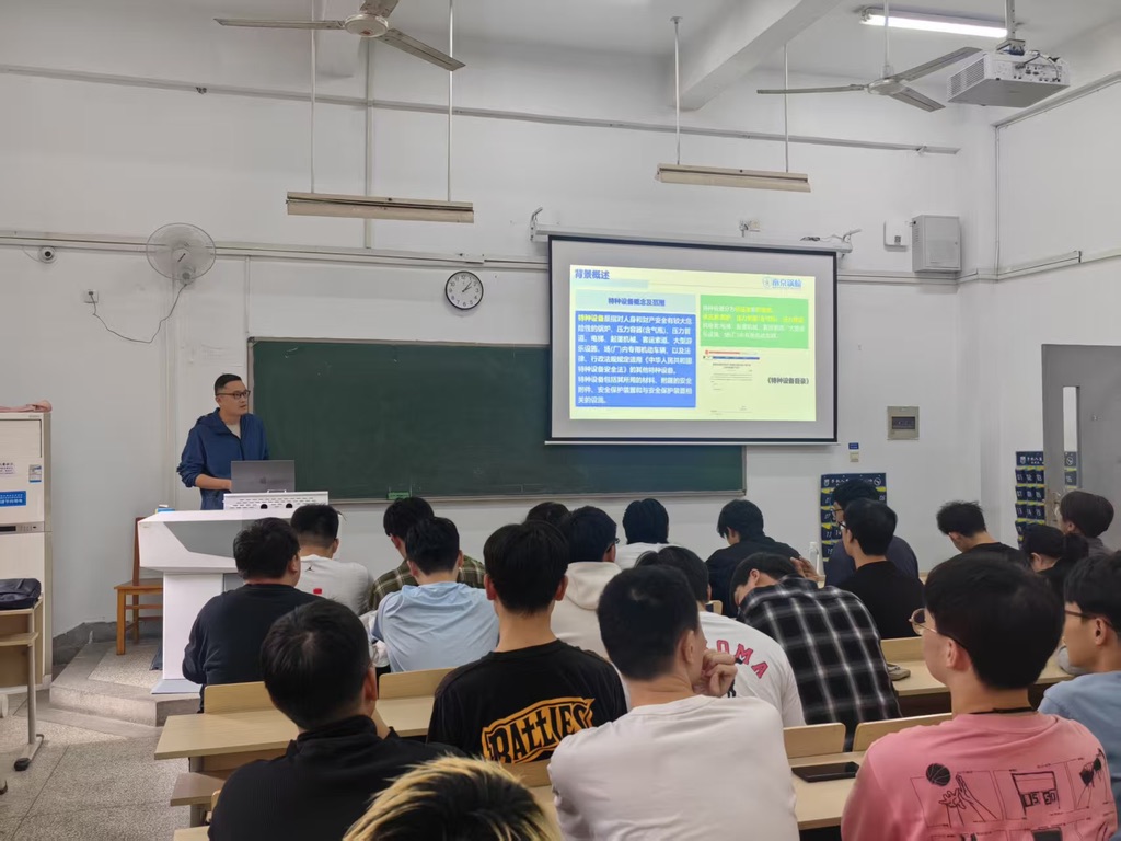 10月17日上午,南京工业大学笃学楼C201,李超、李梦两位专家分别以“特种设备突发事件应对处置与实践”和“承压类特种设备作业安全图像识别技术”为题展开分享。李超主任从近年来国内发生的特种设备相关事故案例入手,深刻剖析了突发事件的特点、危害及演变规律。在此基础上,他系统阐述了“统一指挥、反应迅速、处置科学”的应急管理原则,并详细讲解了从信息报告、先期处置、应急启动到后期评估的全流程应对机制。最后,他通过分享企业事故救援的实战案例,具体说明了应急预案制定、现场指挥协调及舆情应对等关键环节的处置要点与宝贵经验,为同学们上了一堂生动的安全应急“实战课”。李梦老师则聚焦AI视觉技术在特种设备作业中的创新应用,通过图像识别算法在违章操作监测、设备缺陷识别中的实际案例,展现了智能技术为安全管理赋能的新方向。报告中,她还结合多个现场应用实例,生动展示了该技术在压力容器、工业管道等实际场景中如何有效提升检测效率与准确性,为同学们勾勒出智能化安全监管的未来图景。