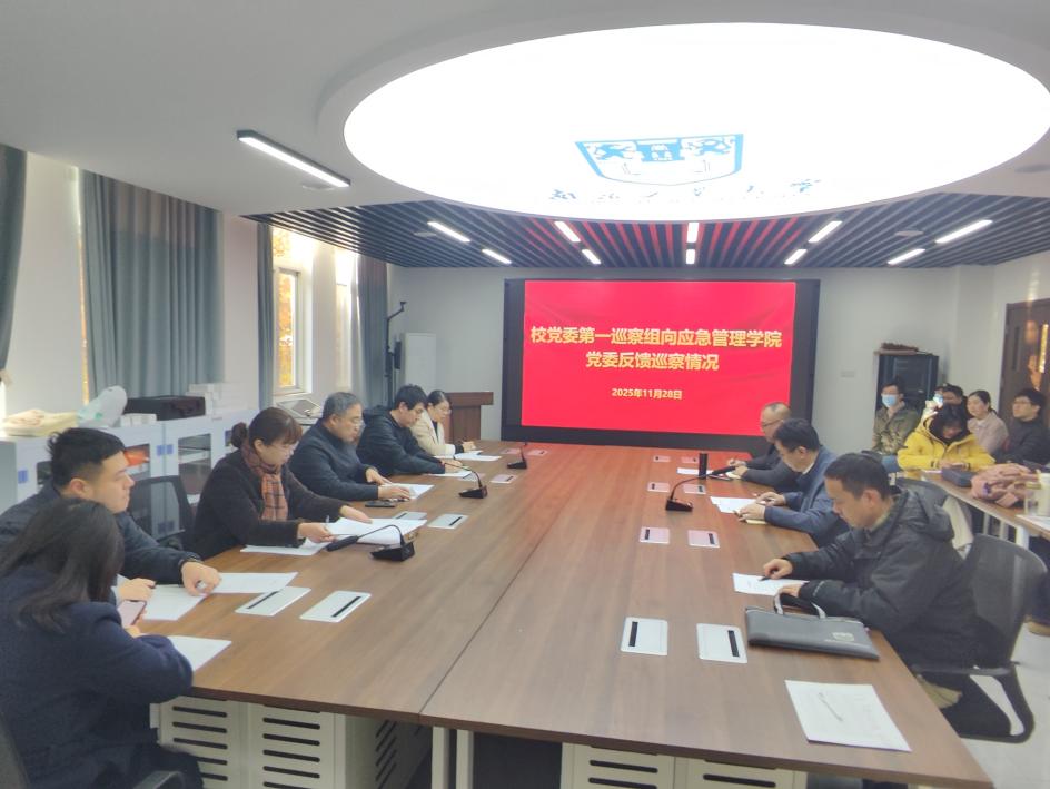根据学校党委巡察工作安排,2025年11月28日,第一巡察组向应急管理学院党委反馈巡察情况。第一巡察组组长凌祥向应急管理学院党委反馈了巡察情况,对抓好巡察整改工作提出要求。应急管理学院党委书记王志荣主持会议并作表态发言。