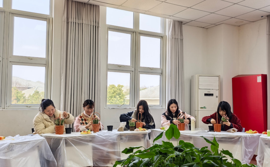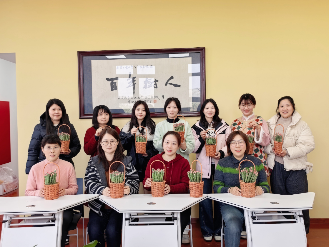 在老师的悉心指导下,女教师们化身“巧手花匠”,兴致勃勃地投入到多肉种植中,认真挑选多肉、铺设盆土、定植造型,相互交流种植心得、分享工作与生活趣事,欢声笑语萦绕全场,平日里的忙碌与疲惫在亲手创作的乐趣中悄然消散。
