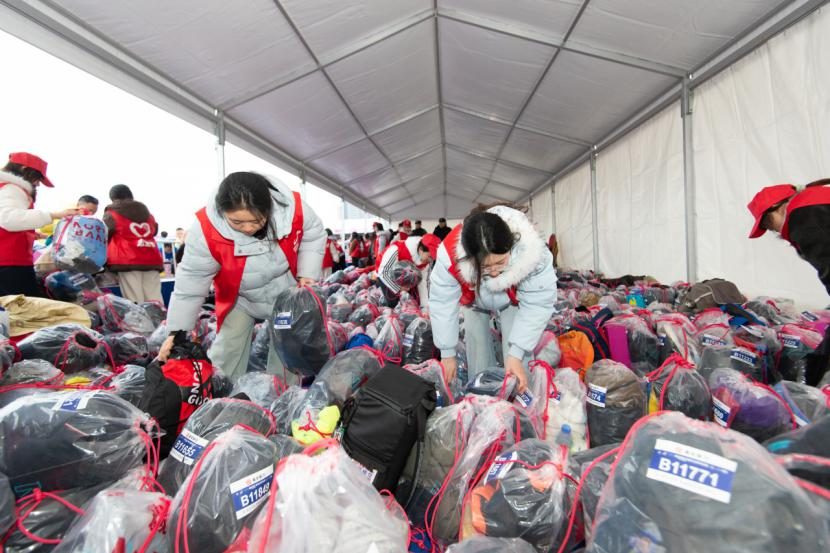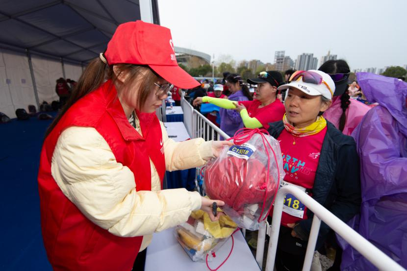 3月8日凌晨4时30分,春寒料峭、天尚未亮,学院志愿者身着统一志愿马甲,搭乘车辆奔赴赛事现场。在赛事工作人员与学生负责人的统筹安排下,志愿者们迅速熟悉包裹存取工作流程,承担起600名参赛选手的存包管理任务。随着参赛选手陆续抵达,志愿者分工协作、密切配合:有的核对选手身份与存包号码并标记确认,有的按编号有序整理摆放包裹。尽管现场人流量大、包裹数量多,各项工作始终推进有序。直至当日中午12时许,所有选手完成领包后,志愿者们才轮休就餐。
